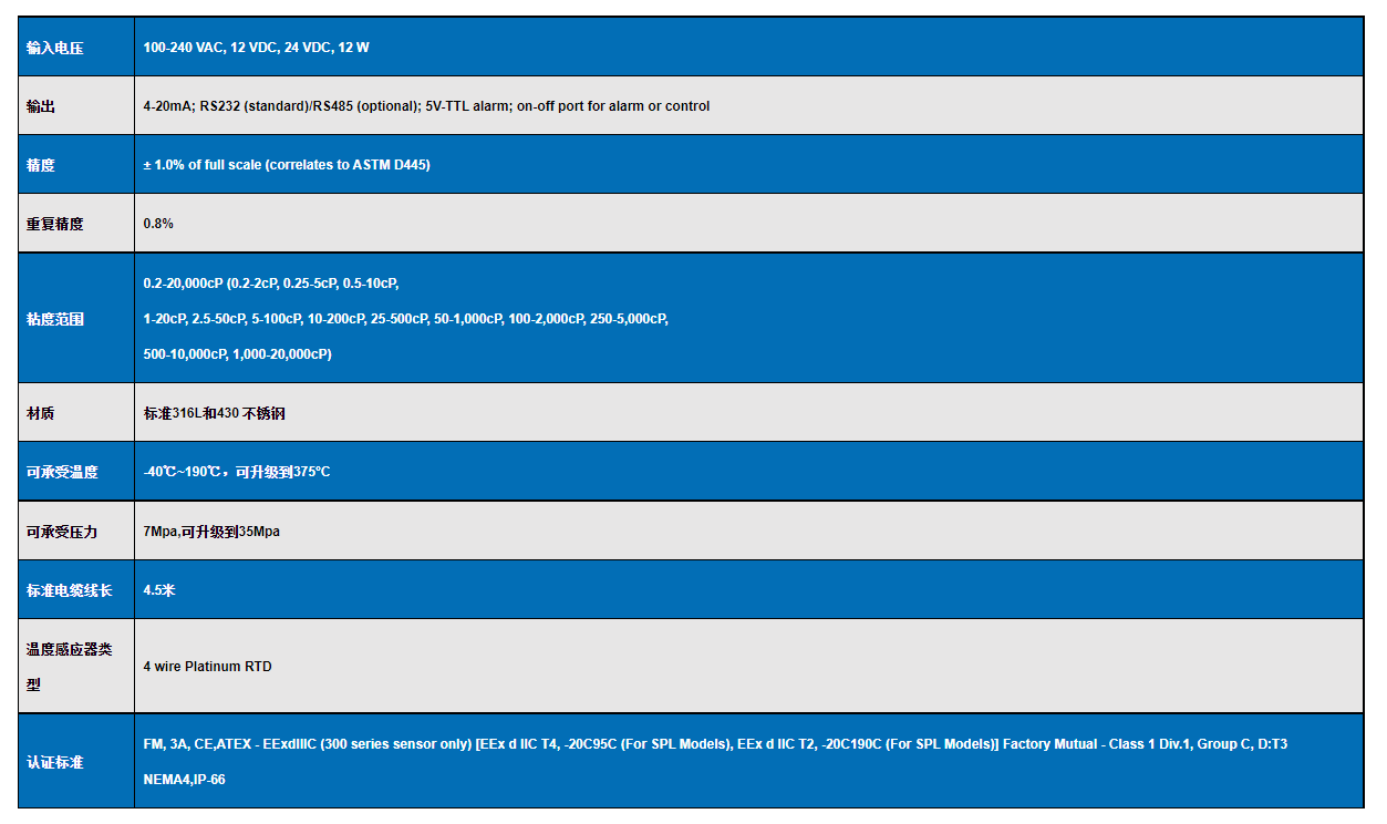 該粘度探頭檢測(cè)樣品量僅需1ml,重量約1kg,樣品可通過粘度探頭溫空套調(diào)節(jié),檢測(cè)時(shí)間十幾分鐘,這些都是防爆粘度計(jì)的典型特征,在實(shí)驗(yàn)室,大學(xué)和研究所得到廣泛應(yīng)用,主要測(cè)定特定流體樣品的粘度參數(shù),比如潤滑油研究領(lǐng)域,為潤滑油的特性和質(zhì)量等標(biāo)準(zhǔn)提供了基本的信息,通過測(cè)定某一型號(hào)潤滑油或其混合物的粘度,可以為客戶或設(shè)計(jì)者提供所需的泵的設(shè)計(jì)容量提供依據(jù)。